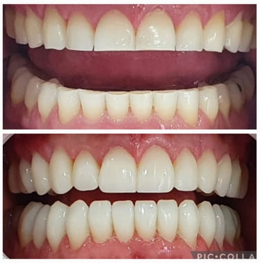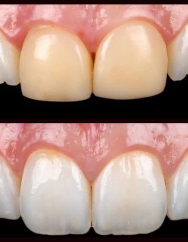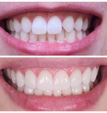 Clareamento Dentário Profissional: Clareamento dos dentes que não receberão as facetas, garantindo um sorriso uniforme e brilhante.